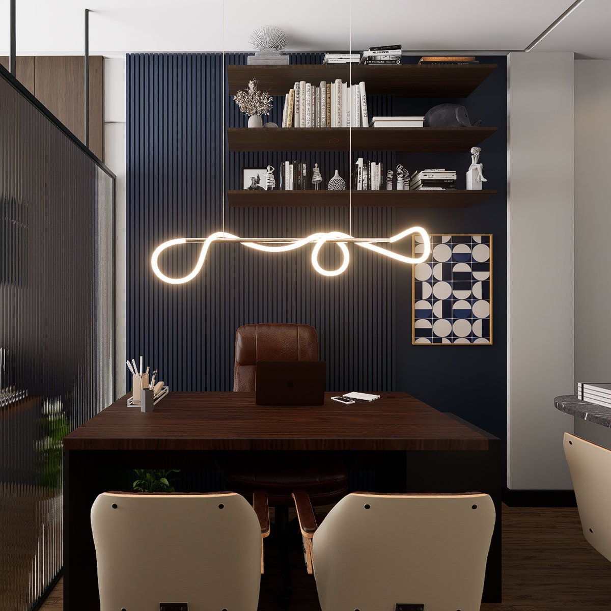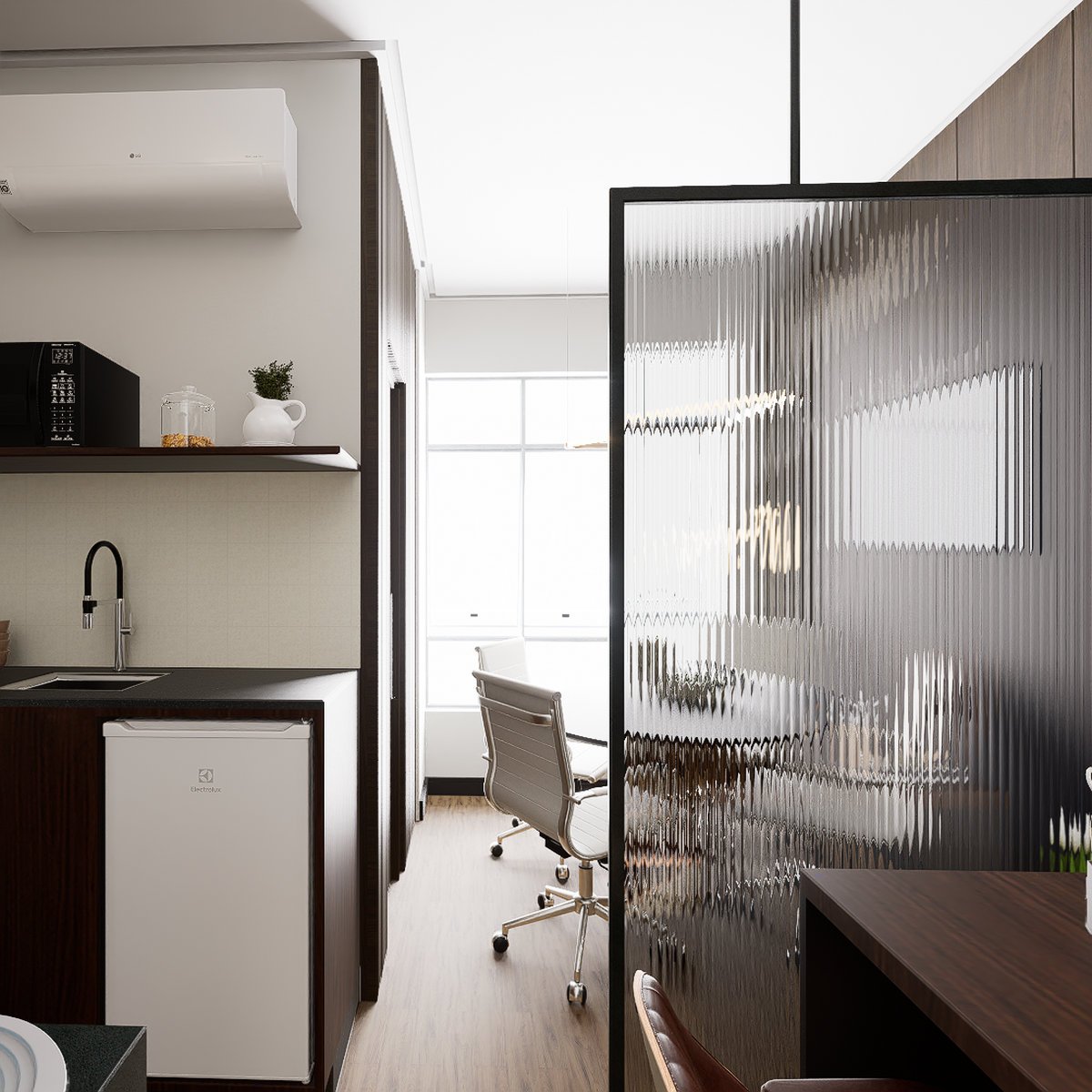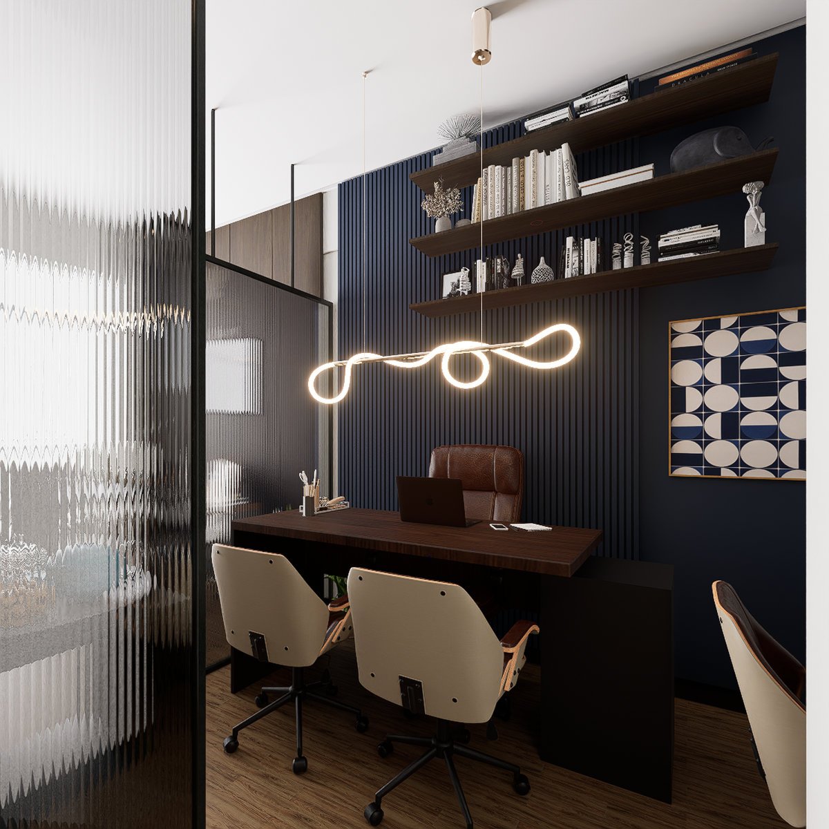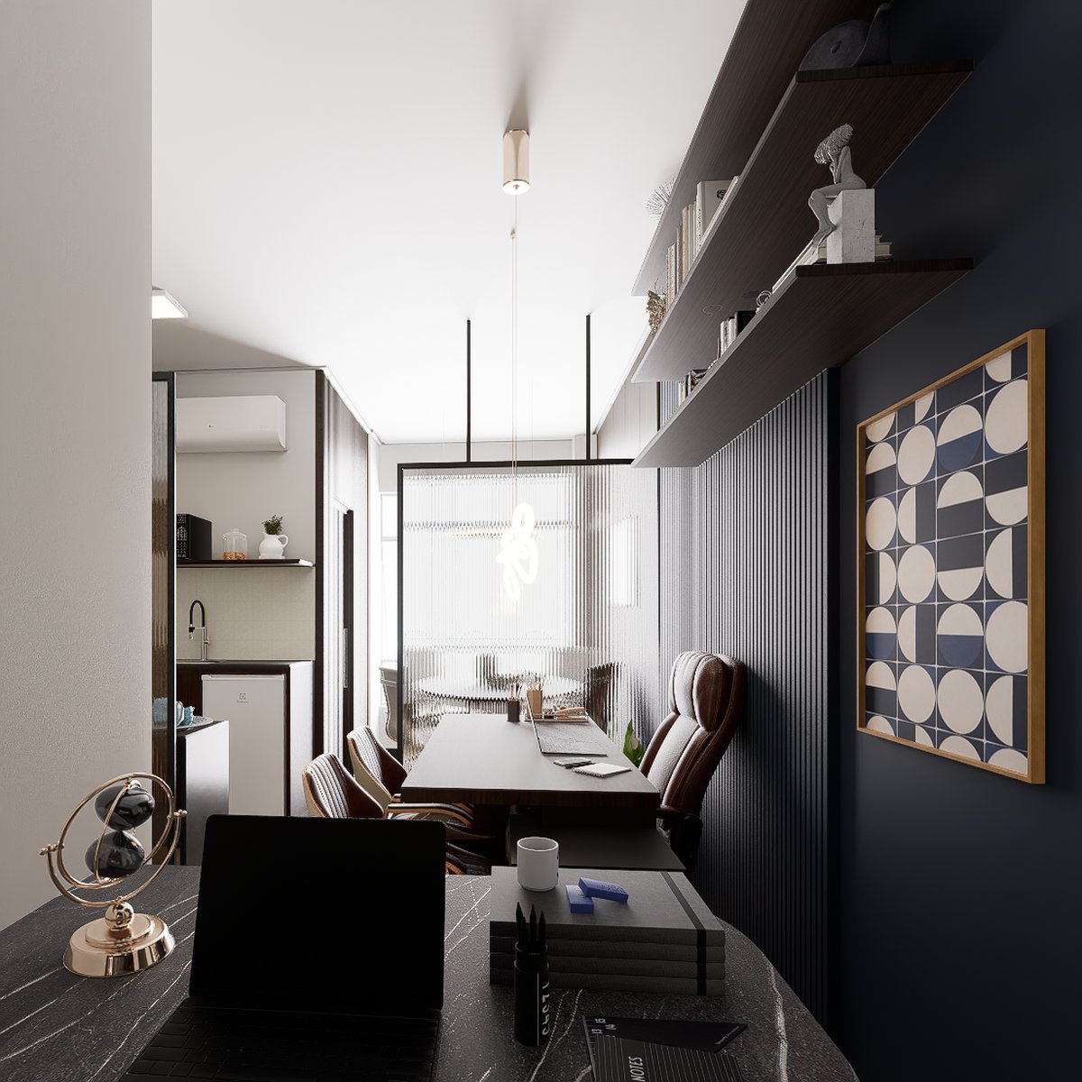 decorações que ornam o ambiente alinhado à identidade da empresa de advocacia.
