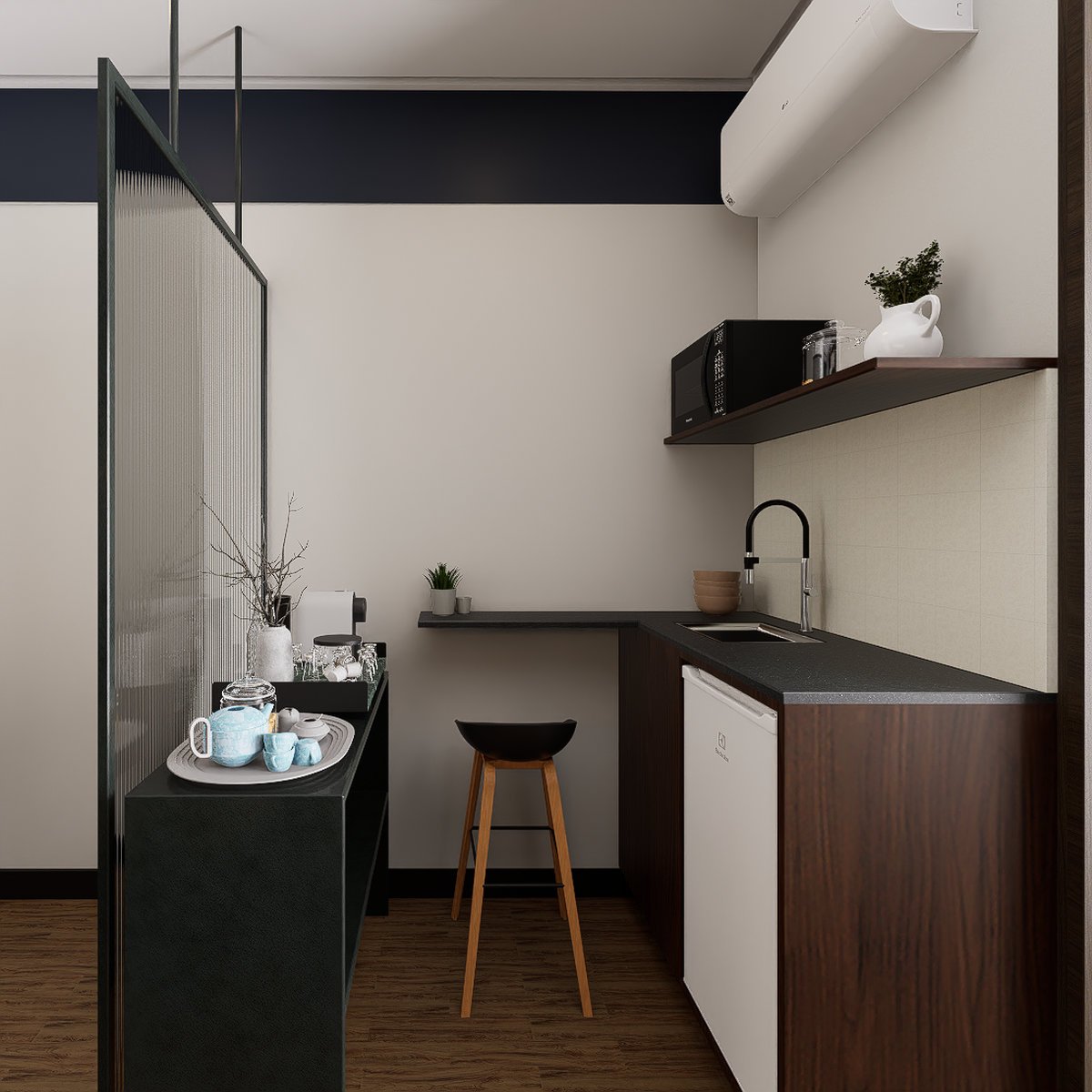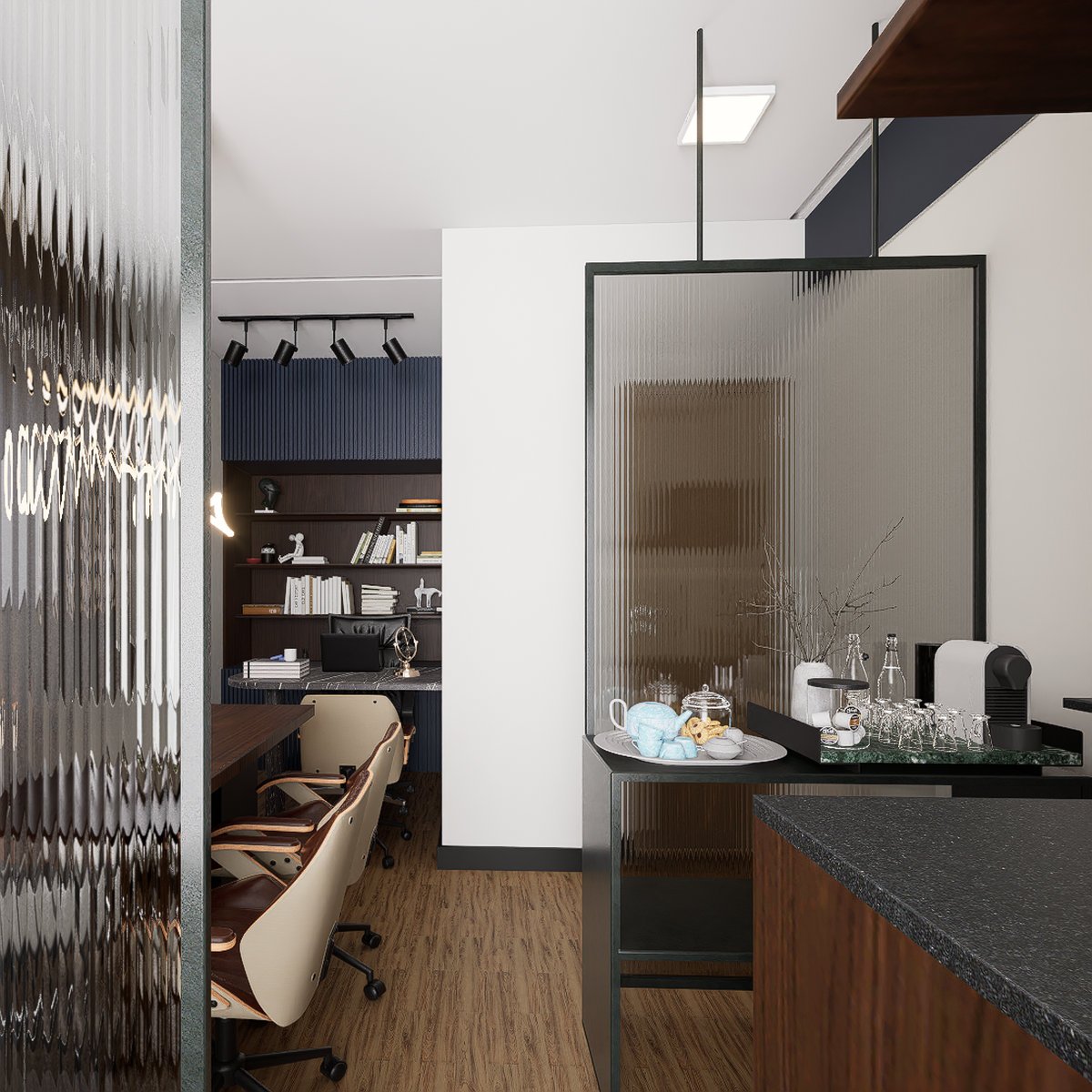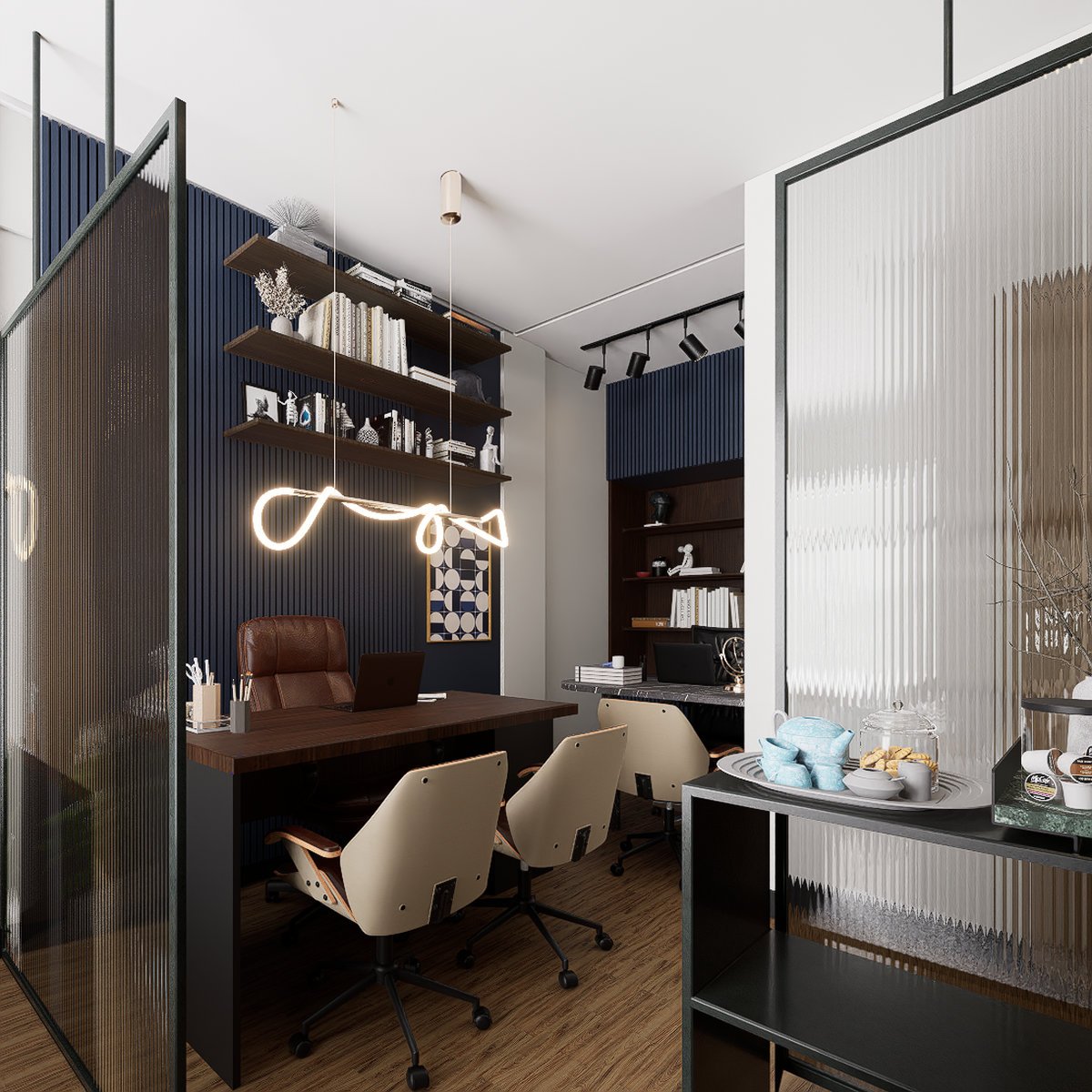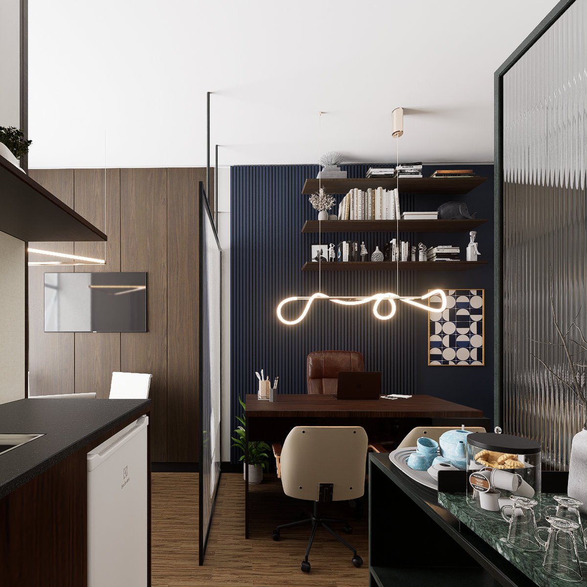 decorações que ornam o ambiente alinhado à identidade da empresa de advocacia.